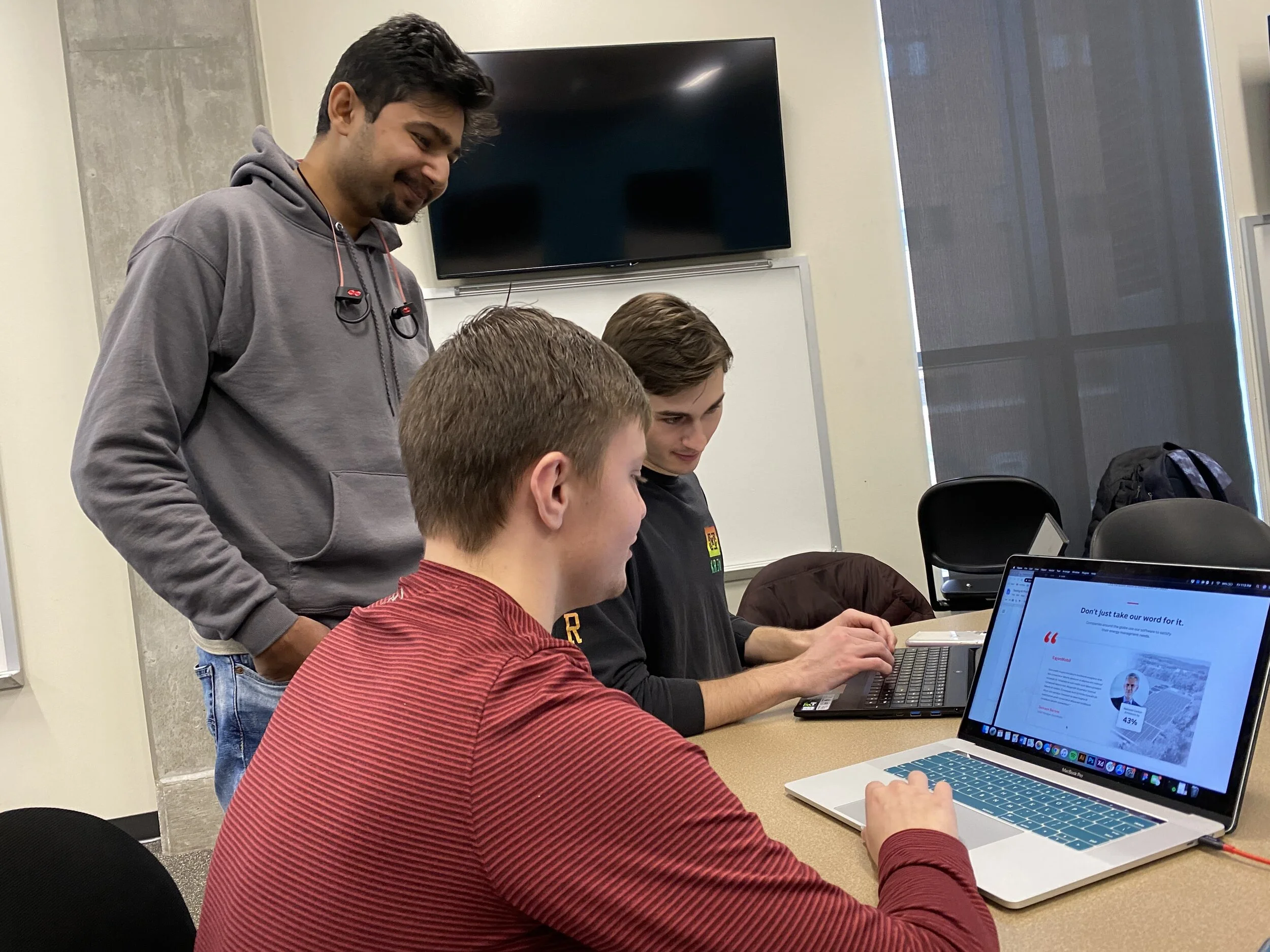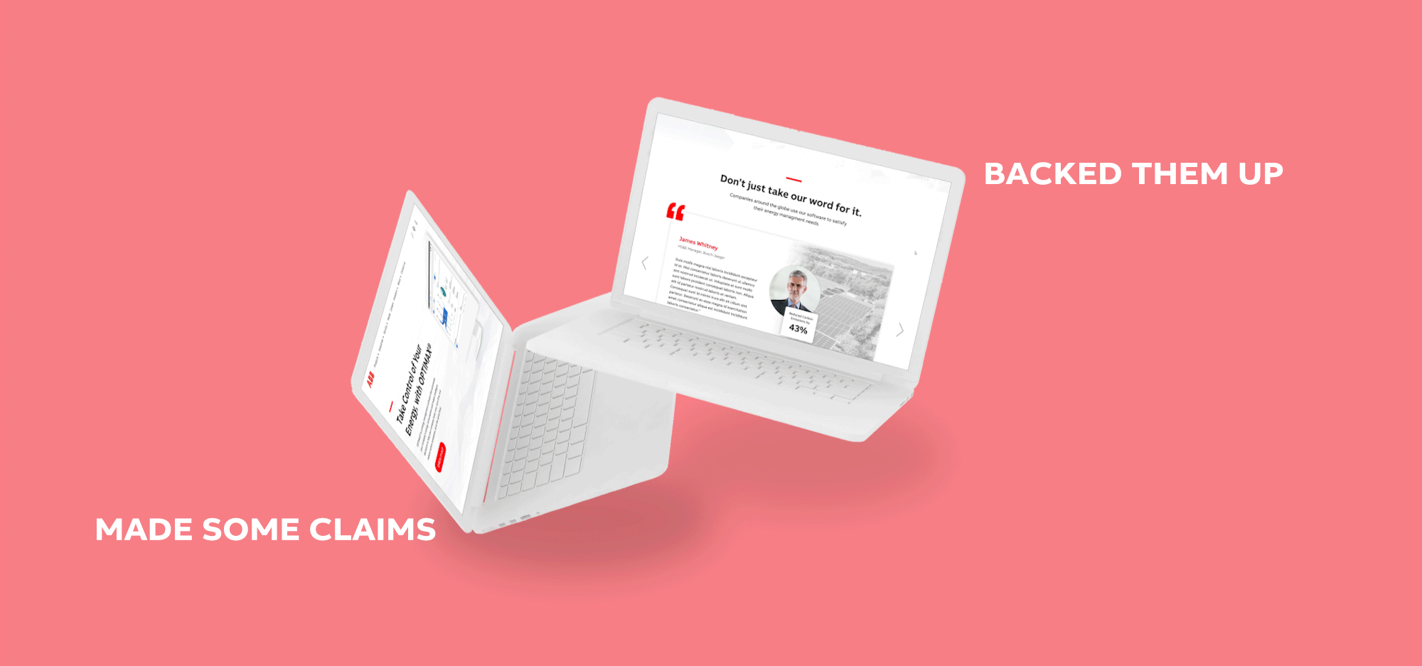 We decided to create a hero section at the top of the site which makes claims on how the user would benefit, and close to the end of the site, we placed customer testimonials to back those claims up. Our research insights led us into making this decision.