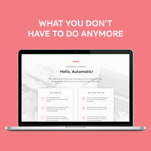 I created an interactive animation to provide the users with context on what the software is doing for the user. The animation shows how the software optimizes energy resources and usage based on the weather conditions. This provides the users with a sense of automation and helps them visualize the product in action in a real world context.