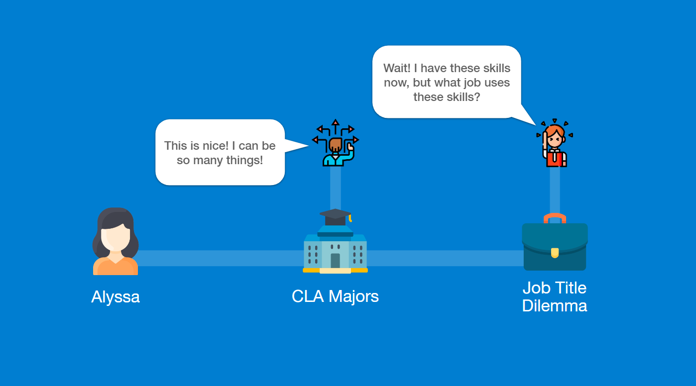 We found that College of Liberal Arts students face this dilemma: While they know what they want to do, they don’t know what job titles suit their skills and interests.