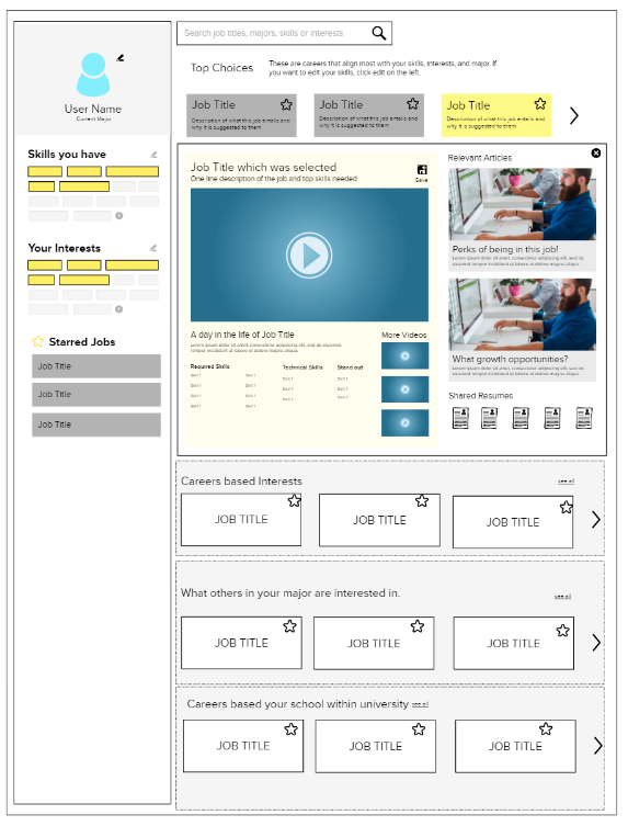 Our design solves for this dilemma providing a platform to explore careers as a College of Liberal Arts major.