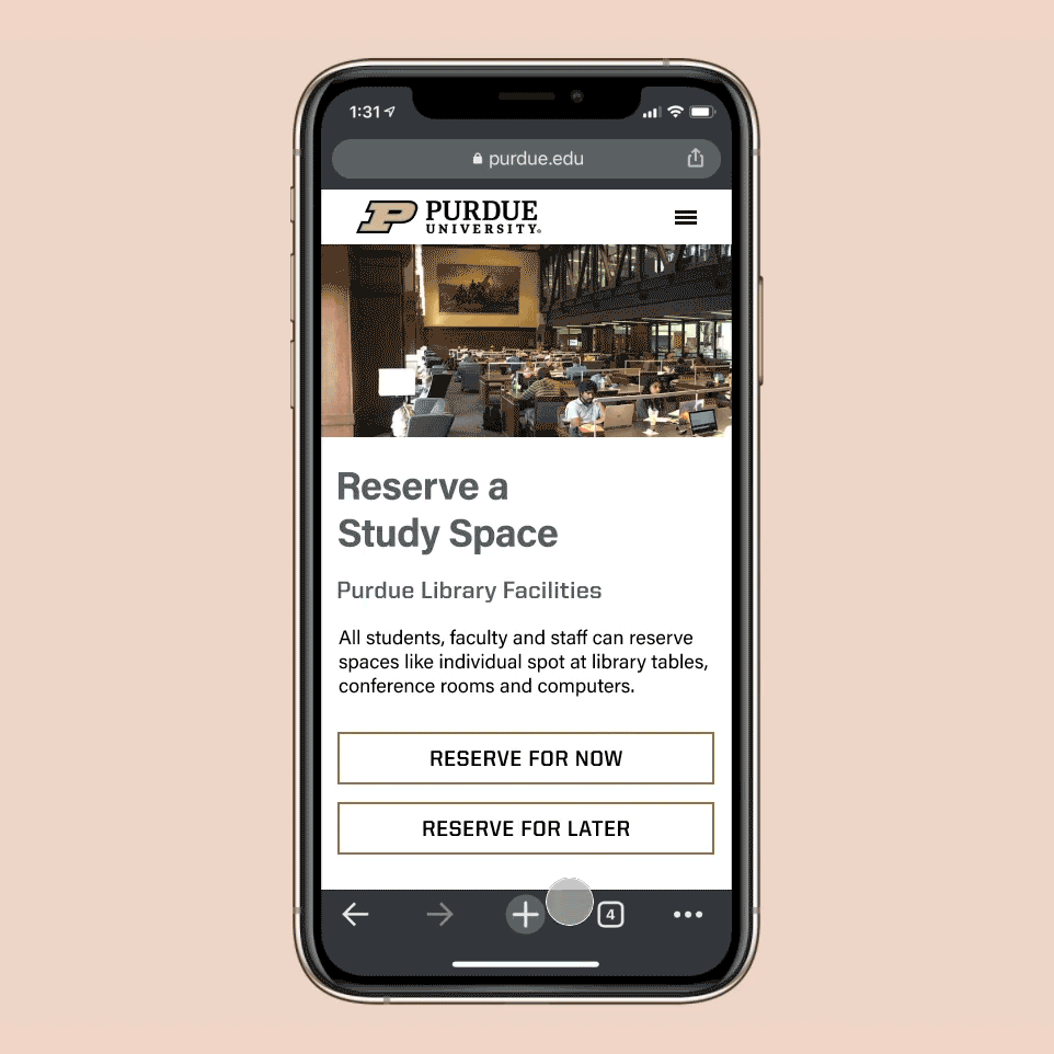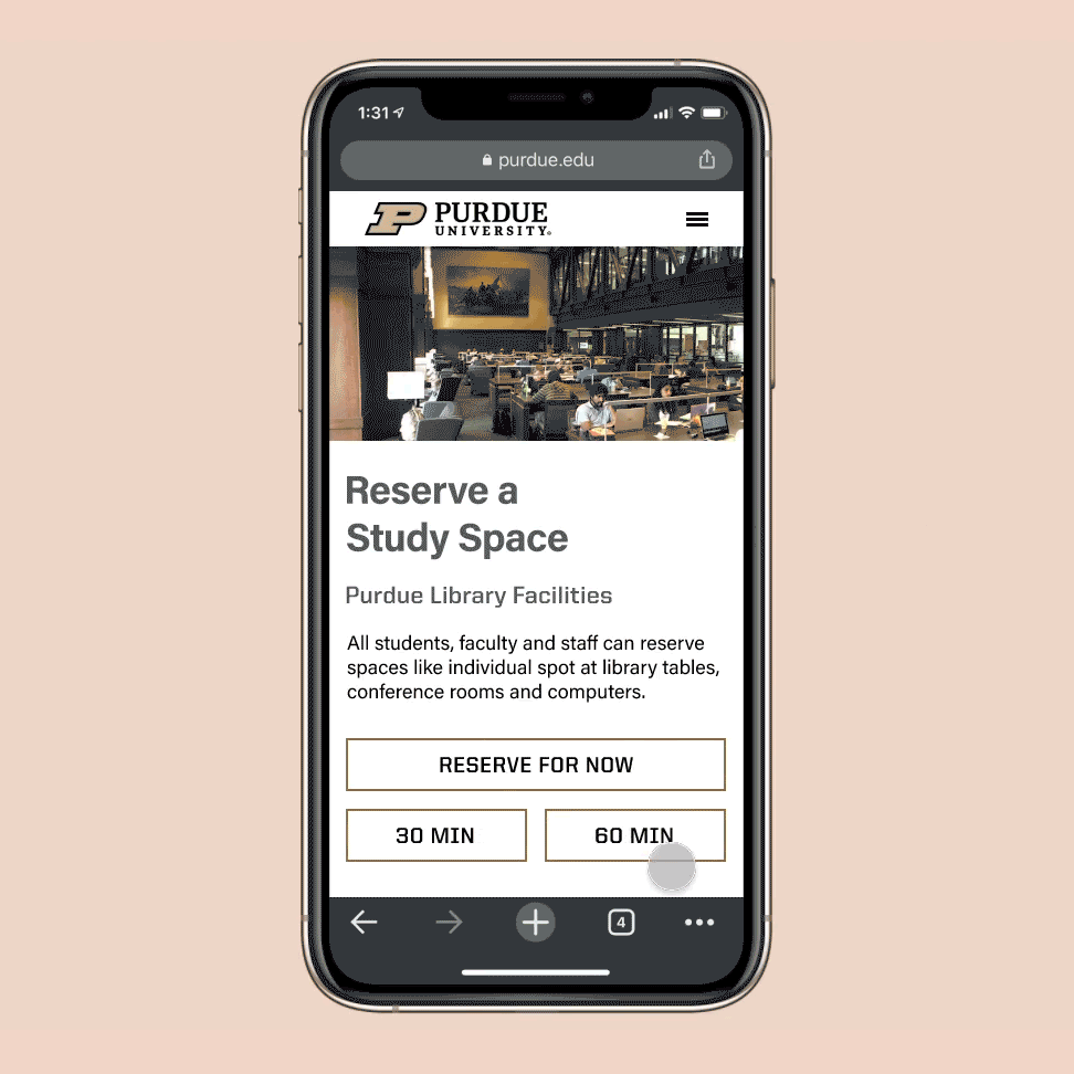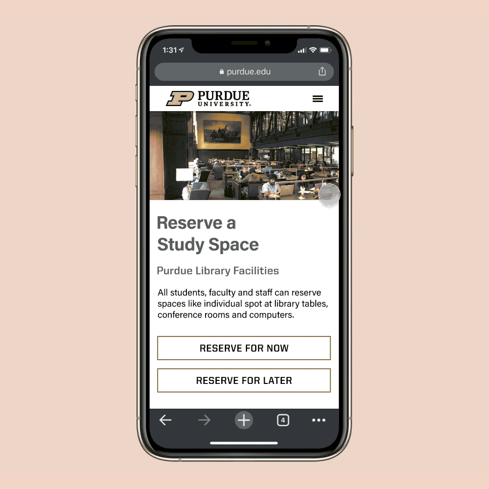 I created a mobile web experience to reserve spaces around Purdue’s campus.