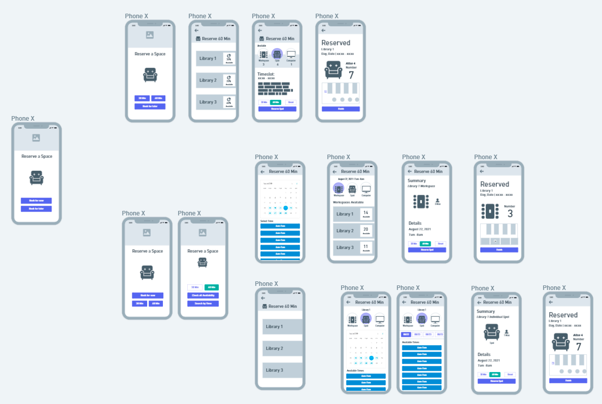 ”Your school wants to provide dedicated spaces for students to help them focus on their academic studies. Design an experience for students, professors, and members of the school community to reserve work desks/spaces in the library. Consider the experience of checking availability, reserving the space, and reporting any issues.”
