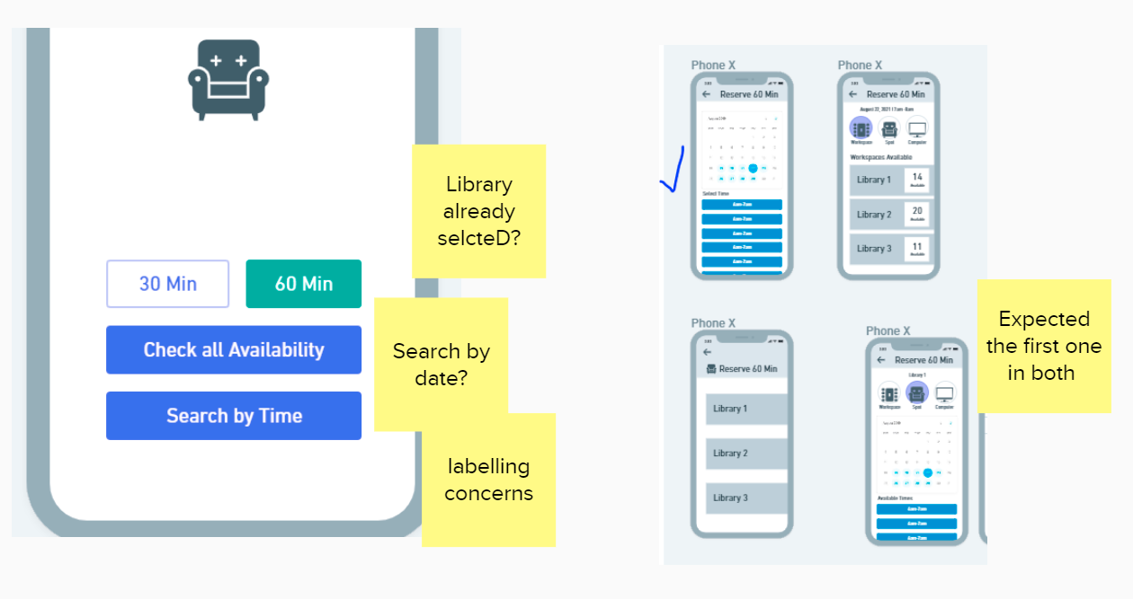 I thought about a simple interaction on mobile to reserve a space. which I further iterated upon.
